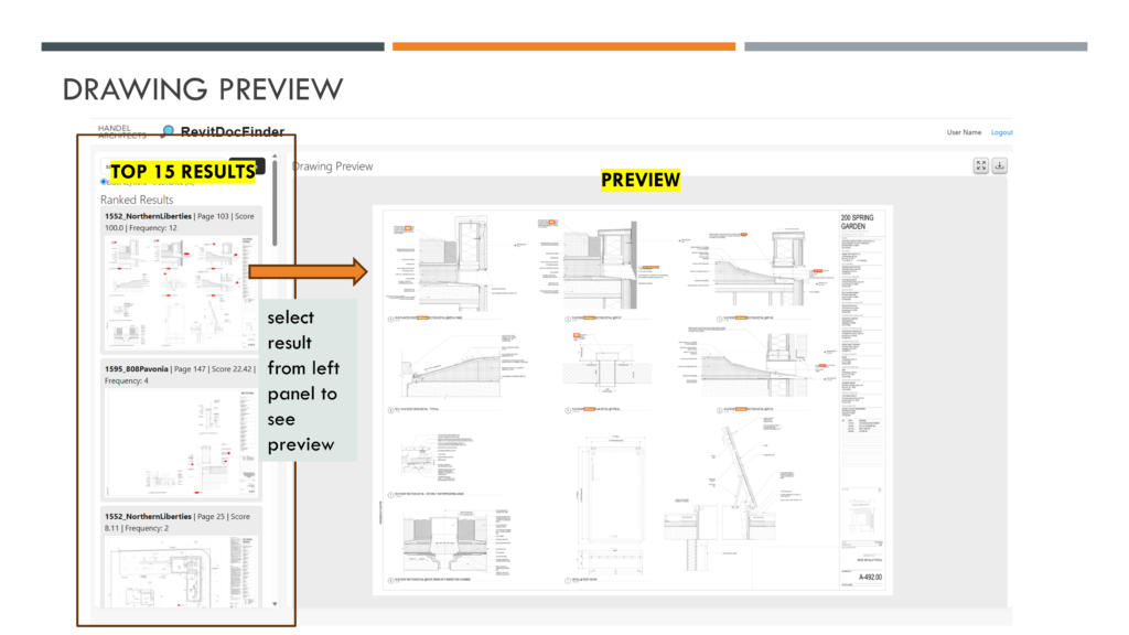 Revit Doc Finder is a smart search tool for Revit drawing packages that lets you locate details, notes, and sheets using keywords or AI-powered semantic search. Results are ranked and previewed so you can find what you need without manually browsing PDFs.